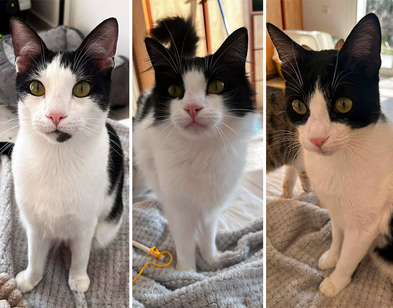 Nora nam het katje op in haar huis. Andere kittens werden geadopteerd maar Jet niet. Hij is niet haantje de voorste en bleef altijd een beetje op de achtergrond als er mensen kwamen kijken. En zwarte katten zijn sowieso niet zo populair in Spanje. Dus de tijd verstreek, Jet werd groter en bleef achter bij Nora. Daar wordt hij goed verzorgd maar hij krijgt niet veel aandacht. Hij is nog steeds wat verlegen naar mensen toe maar als hij je eenmaal kent dan wil hij heel graag knuffelen.