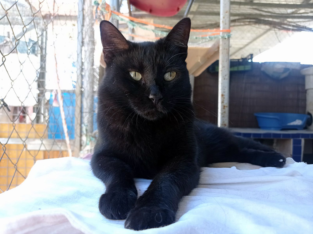 Toen ze daar net woonde was ze erg verlegen, ze had in korte tijd dan ook wel heel veel veranderingen doorgemaakt. Beetje bij beetje kroop ze uit haar schulp en kwam er een geweldige poes tevoorschijn. Ze is superaanhankelijk, dol op mensen, sociaal en heel rustig. Als de medewerkers van het asiel in haar verblijf komen houdt ze ze van een afstandje in de gaten, maar zodra er iemand oogcontact met haar maakt komt ze aanrennen om haar knuffels en aaitjes in ontvangst te nemen.