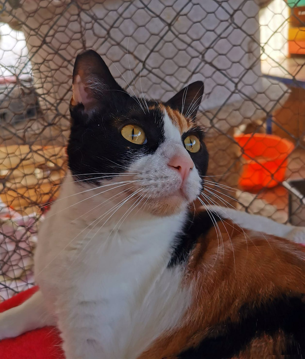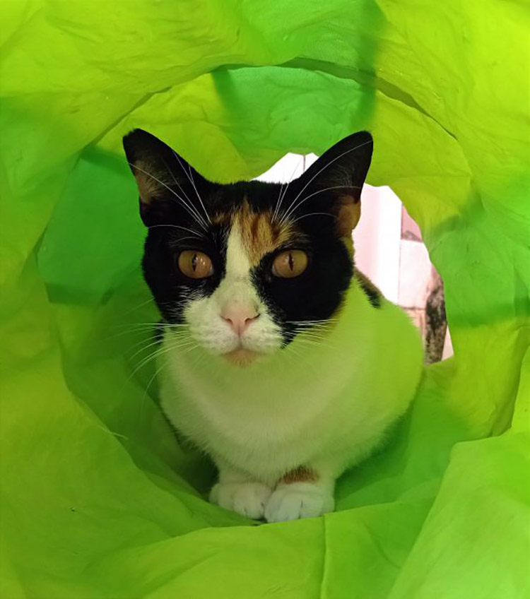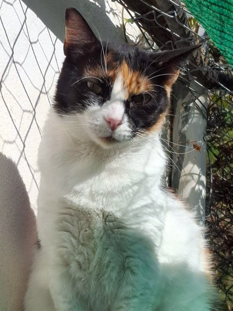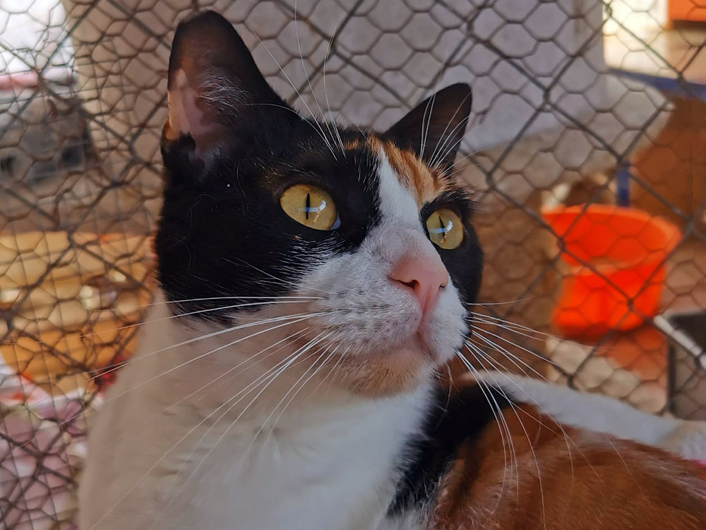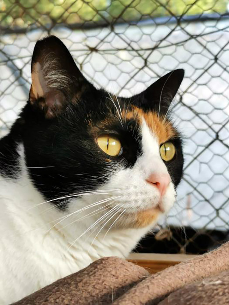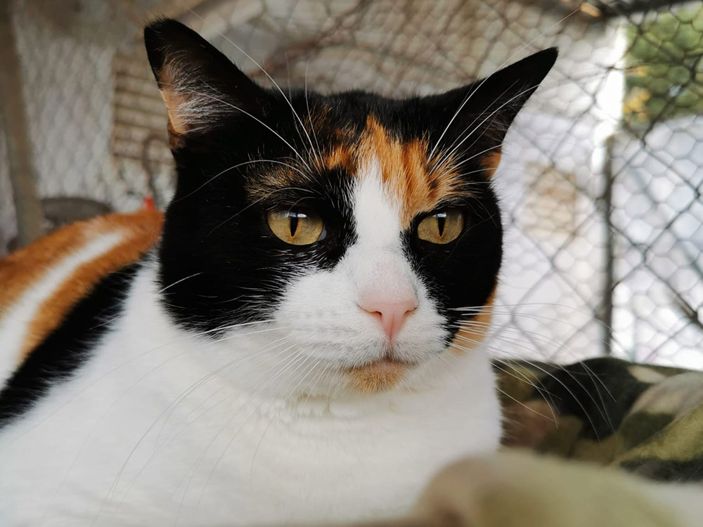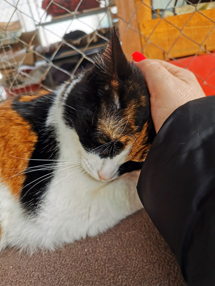 In het begin moest April erg wennen aan haar nieuwe omgeving. Het geblaf van honden, vrijwilligers die kwamen en gingen en ook opeens veel huisgenootjes. Ze had tot dan toe altijd alleen “gewoond”. Maar stapje voor stapje paste ze zich aan haar nieuwe omgeving aan. Met haar rustige en goedaardige karakter kon ze het al snel goed vinden met haar huisgenootjes. Maar ze blijft een onafhankelijke kat. Als het haar allemaal te druk wordt zoekt ze graag haar eigen plekje op om even bij te komen.