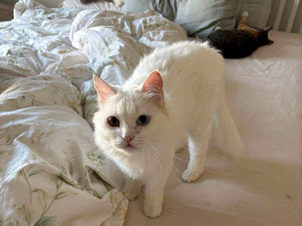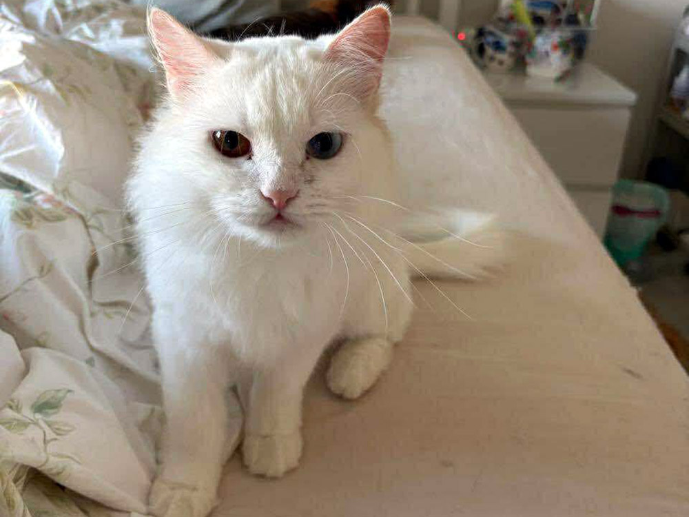 Chrissy zit intussen al een hele tijd in opvang en hoopt op een eigen huisje. Ze is weer helemaal opgeknapt en is goed gezond. Wel heeft ze een handicap, ze is namelijk doof. Dat komt vaker voor bij witte katten. Zelf heeft ze er geen last van en het hoeft ook helemaal geen bezwaar te zijn om haar te adopteren. We zoeken wel een huisje voor haar waar ze niet zomaar naar buiten kan omdat ze geen verkeer hoort aankomen en het dus gevaarlijk kan zijn. Als er in haar nieuwe huis een tuin of balkon is met die dus wel veilig afgeschermd zijn, of ze moet gewoon binnen gehouden worden.