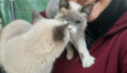 Ze waren amper een maand oud toen ze gevonden werden in een gecontroleerde kattenkolonie. Alles wees erop dat ze gedumpt waren. Ze waren in een heel slechte conditie en hun beide ogen waren geïnfecteerd. Een jonge vrouw nam hen tijdelijk in huis om ze een kans te geven. Vanaf dat allereerste moment kregen ze alle veterinaire zorg die ze nodig hadden en begonnen ze aan een intensieve behandeling die maanden duurde. De klok rond werden hun oogjes gedruppeld en gezalfd. Hun linkeroog herstelde volledig, maar het rechteroog verslechterde steeds meer tot er nog maar een optie overbleef: het oog verwijderen en de wond sluiten. De zusjes herstelden volledig van deze ingreep en konden normaal en pijnvrij verder leven.