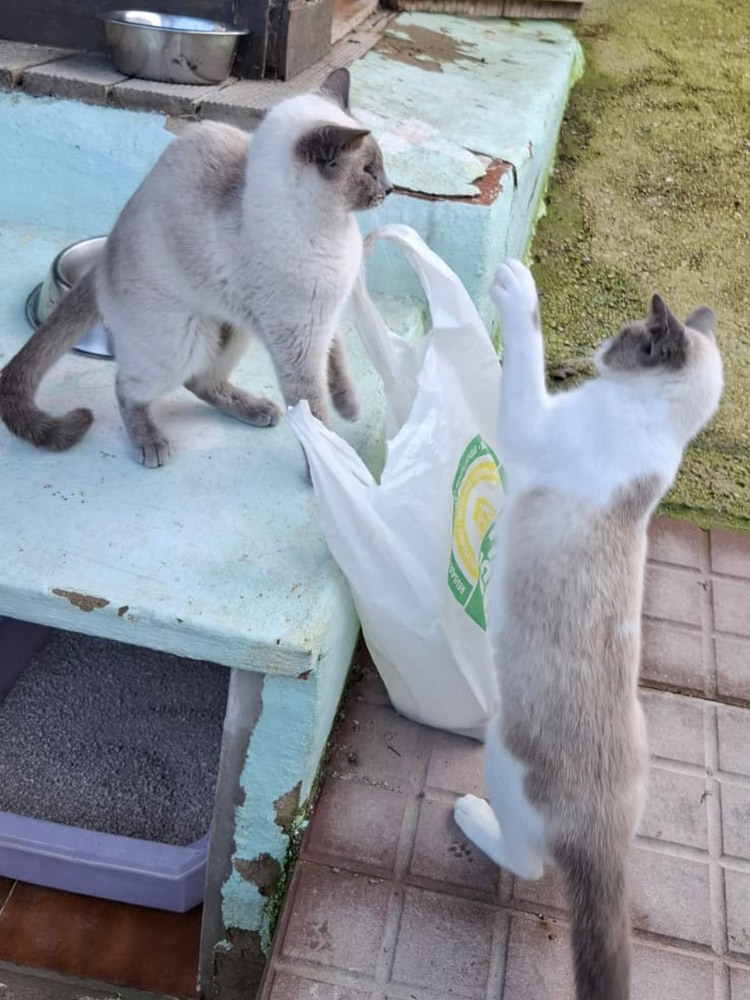 Regina is rustiger en bedachtzamer. Ze geniet van de vredige momenten en is wat voller dan haar zusje. Ze zijn allebei dol op natvoer en als er snoepjes of ander lekkers in de buurt komt veranderen ze in kleine piranha’s. Ze kunnen het ook allebei goed vinden met andere katten. Iris met haar dappere karakter laat zich niet snel intimideren door bazige huisgenootjes, desnoods deelt ze een tik uit om haar mening kracht bij te zetten. Of honden in hun plaatje passen is onbekend.