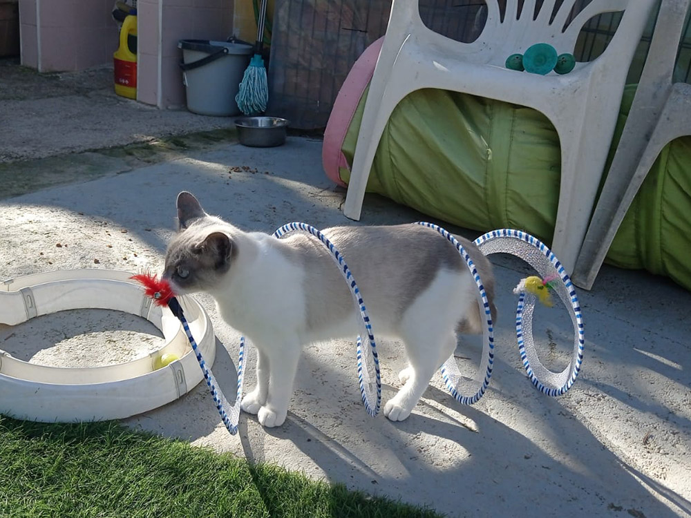 Iris is pure energie: speels, ondeugend, vrolijk. In het asiel wordt er vaak met een glimlach gezegd dat ze “katten-ADHD” heeft. Ze zit nooit stil, ze is dol op rennen, klimmen, springen en spelen. Bij een bezoek aan de dierenarts probeert ze altijd op een onbewaakt moment in het medicijnkastje te klimmen en pennen en papieren te “stelen”. Iris is een slanke kat.