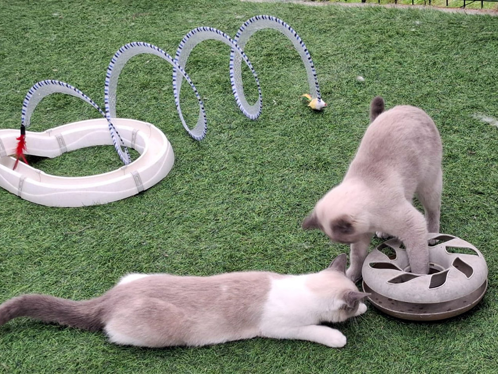 Helaas kon het pleeggezin niet voor hen blijven zorgen dus verhuisden de zusjes naar het asiel. Vanaf de eerste dag pasten ze zich geweldig aan, alsof ze nooit ergens anders gewoond hadden. Ze waren speels, vrolijk en ontzettend aanhankelijk.