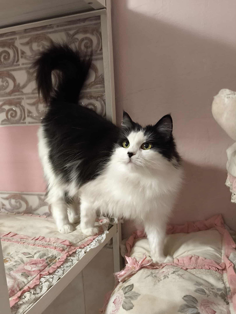 Laura had dubbele pech, want ze had een huisje gevonden. Maar toen de katjes werden opgehaald om op transport te gaan, was er geen stroom in het asiel door een drone aanval. De mensen van het asiel hebben haar daarom met een zaklamp gezocht en dachten haar gevonden te hebben maar… het was een andere kat. Die andere kat is naar Nederland gekomen en heeft hier een fijn huis gevonden. En arme Laura zit nog in het asiel. Daarom hopen we nu voor haar alsnog een fijn plekje te vinden.