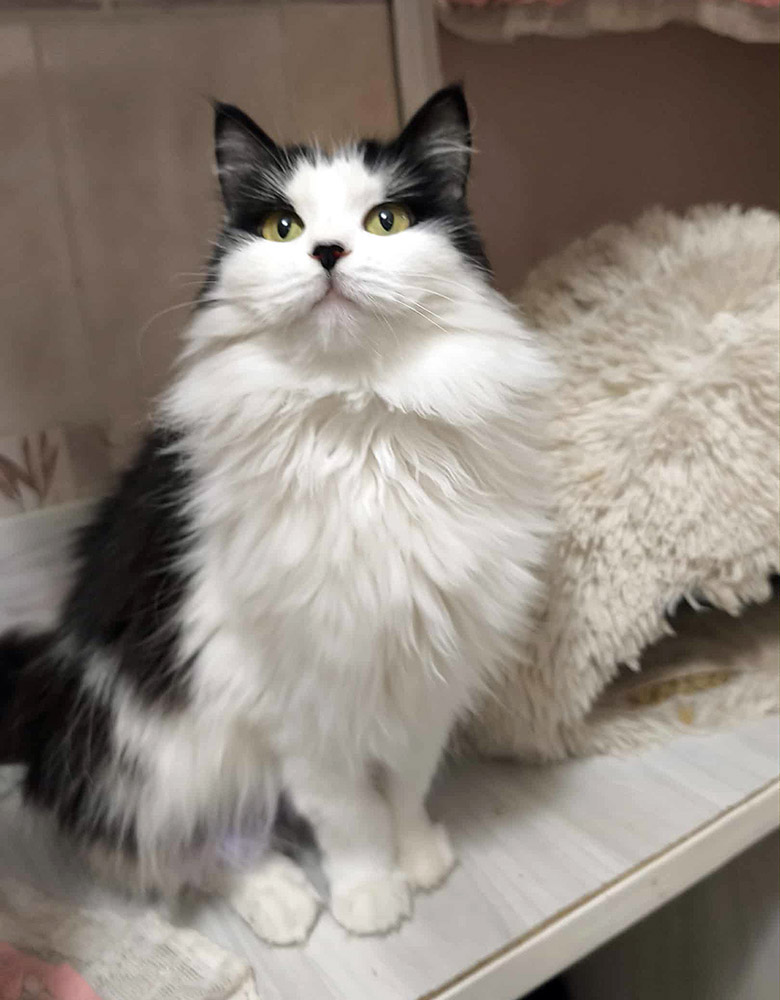 Het is duidelijk dat Laura een huiskat is geweest en dat ze zich niet kan redden op straat. Ze is nu een tijdje in het asiel. Daar bleek al snel dat ze dol op mensen is. Ze houdt van knuffelen en zou het liefst op schoot zitten maar daar hebben de mensen in het asiel geen tijd voor.