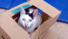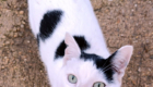 Hij verscheen voor het eerst in een kattenkolonie op het strand. De vrouw die deze kolonie verzorgt, trof hem aan terwijl hij uitgehongerd en met een lege blik aan de uiterste rand van de kolonie toe zat te kijken hoe de andere katten zaten te eten. Ze benaderde hem voorzichtig om hem wat eten te geven. Hij leek doodsbang, maar tot haar verbazing volgde hij haar daarna naar haar huis.