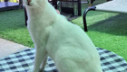 Hem weer de straat opsturen was geen optie, maar gelukkig was er een plekje voor hem in het asiel. Daar paste hij zich snel aan. Hij is altijd vrolijk, aanhankelijk en graag in de buurt van de medewerkers. Als zij aan het werk zijn in het asiel klimt hij liefst op hun schouders om met zachte geluidjes of kopjes hen aan te moedigen.