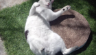 Pongo is soms ook een ondernemende kat. Hij klimt naar de hoogste verdieping van de krabpaal of ligt op de planken aan de muur. Daar overziet hij het hele verblijf en als hij uitgekeken is springt hij naar beneden om achter balletjes en speelgoedmuizen aan te ravotten. Ook een lekkere kraaktunnel is dolle pret voor hem. Is hij moegespeeld dan kan hij uitgebreid dutten, waarbij zo nu en dan een klein snurkje te horen is.